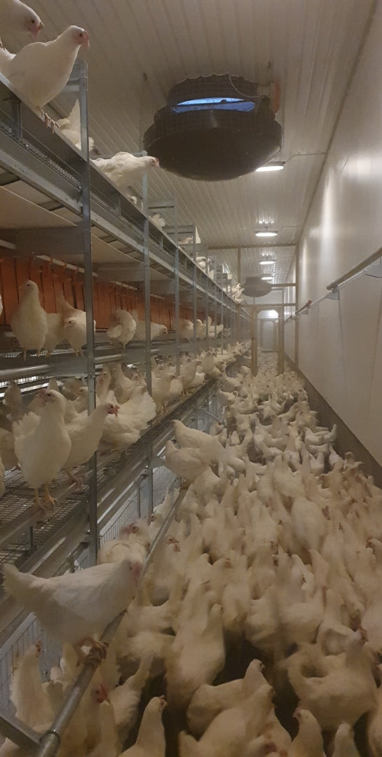 Ved 78-80 ukers alder blir hønene avlivet og byttet ut med nye høner. Hønene blir kjøpt inn 16 uker gamle og begynner å legge egg ved 22 ukers alder, de første eggene som kommer er små og vokser i takt med hønene, ved ca 30 uker er det 50 % store L egg.